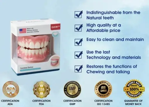 Introducing QIAWI™ Multi-Functional ThermoFlex Silicone Denture Set — the breakthrough in denture technology that solves all the frustrations and fears you’ve had about dentures. No more slipping, no more pain, and no more embarrassment. Just a smile that feels like yours again, and the confidence to take on the world.